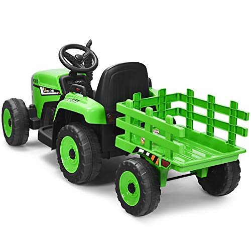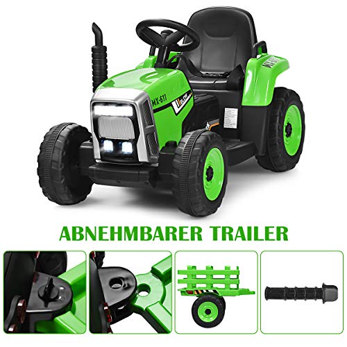 COSTWAY 12V 3-Gang Traktor mit abnehmbarem Anhänger